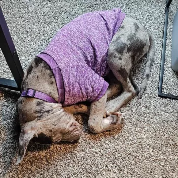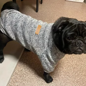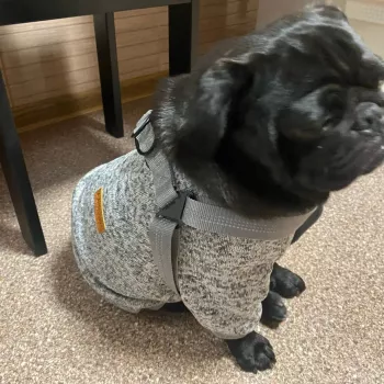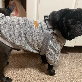 My female XL bully puppy hates the cold, but she loves this soft, warm grey sweater. It's easy to put on and matches her grey merle coat.