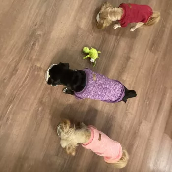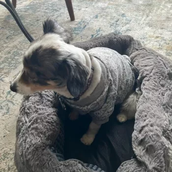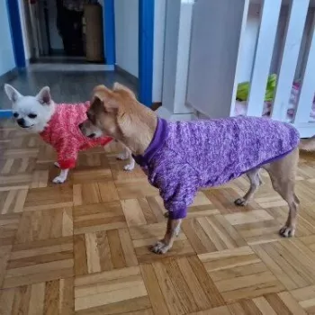 My dogs' and my favorite sweater. Great gift for a small dog – the size small works for a 4 lb dog, and medium for a 13 lb dog.