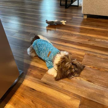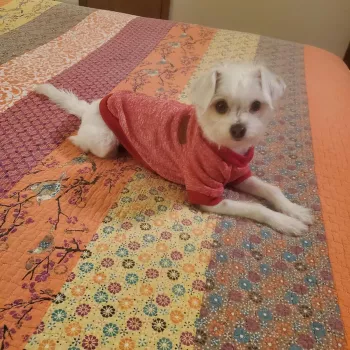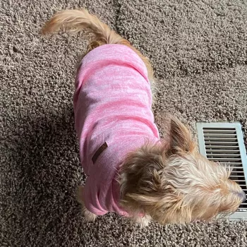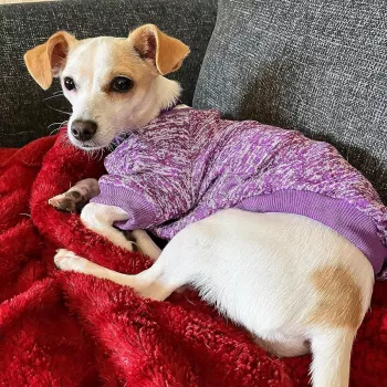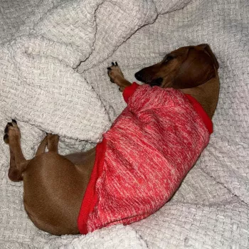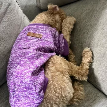 Just got this sweater for my dog and she loves it. She's sleeping so comfortably in it. It's soft, well-made, and arrived quickly. She adores her new sweater.