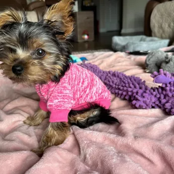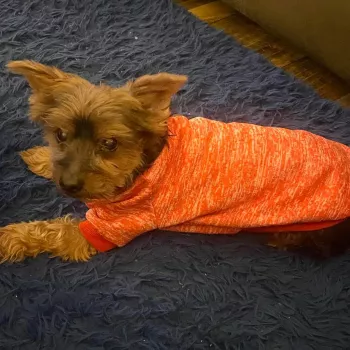 This puppy sweater is the best! It's thick, super soft, and high quality. I got a medium for my 9-10lb Yorkie, but a small would have also worked.
